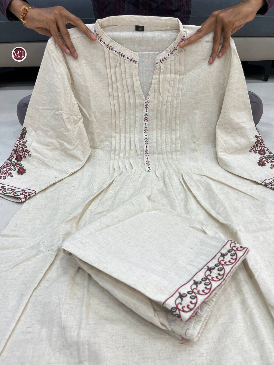 • Design: Featuring intricate South Cotton designs throughout the top and matching pants, beautifully embellished with embroidery work.