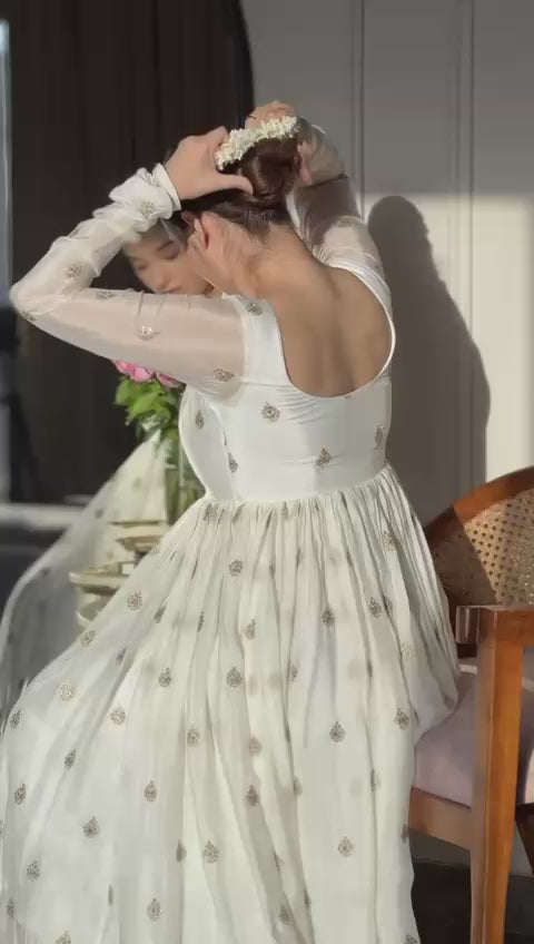 Designer Chinon Silk Gown Pant Dupatta Set | New Festive Collection