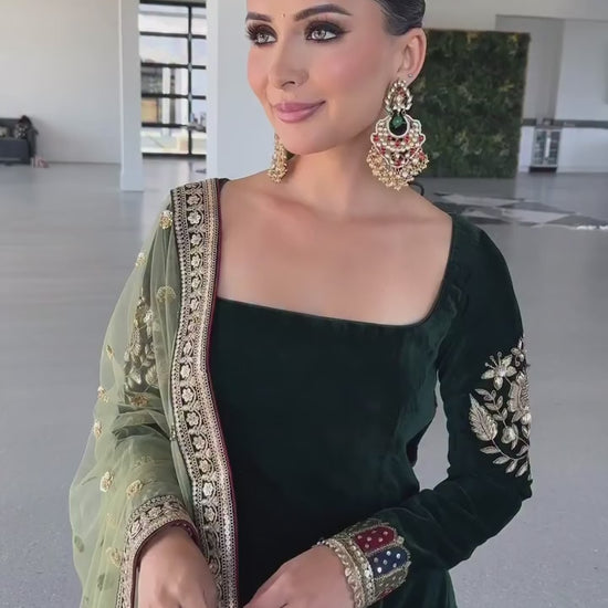 Designer Velvet Party Suit with Heavy Sequin Embroidery & Fully Stitched Bottom