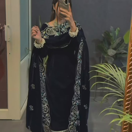Party Wear Viscose Velvet Designer Suit with Heavy Sequin Embroidery