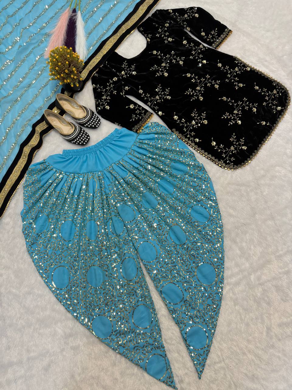 Royal Designer Dhoti Salwar Set with Fancy Top & Dupatta